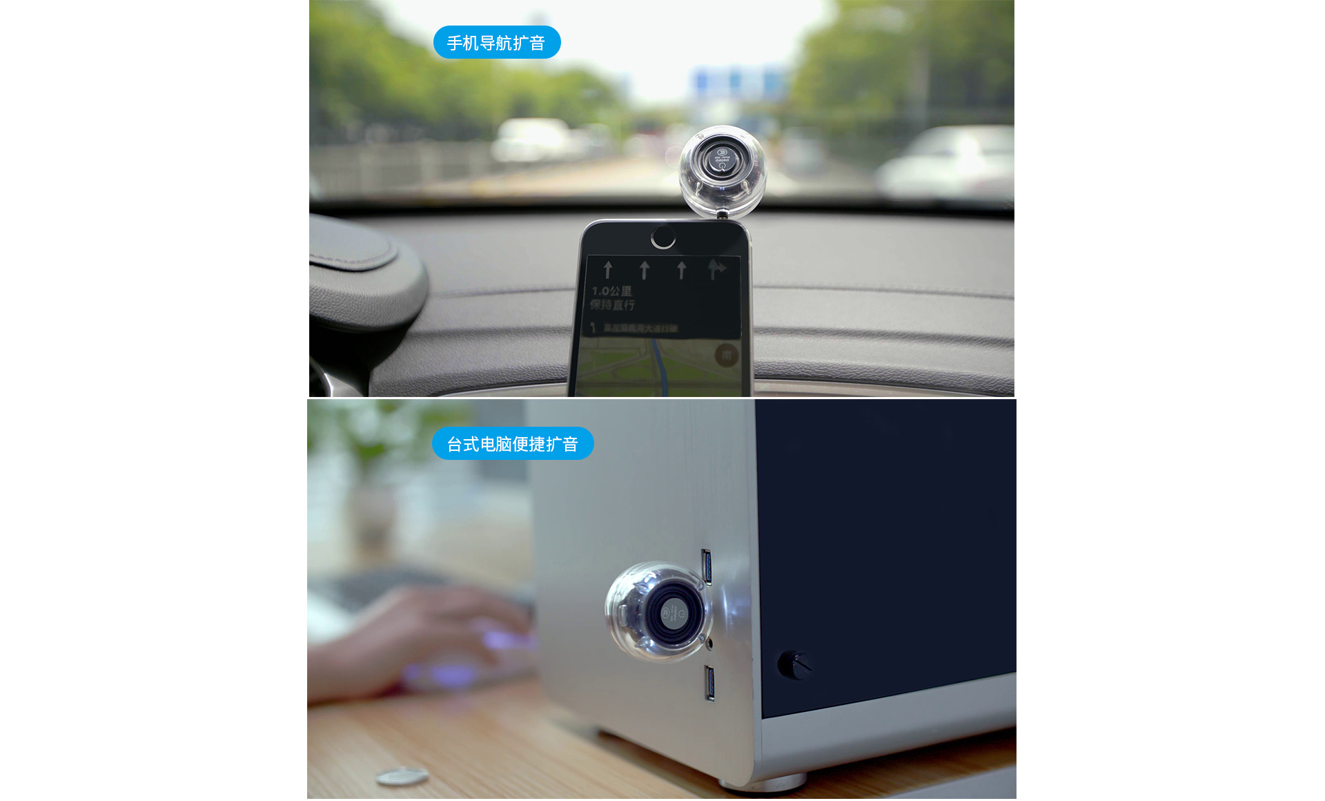 就像耳机一样插入3.5mm接口,就可以享受5倍手机的音量,5倍手机的音质。